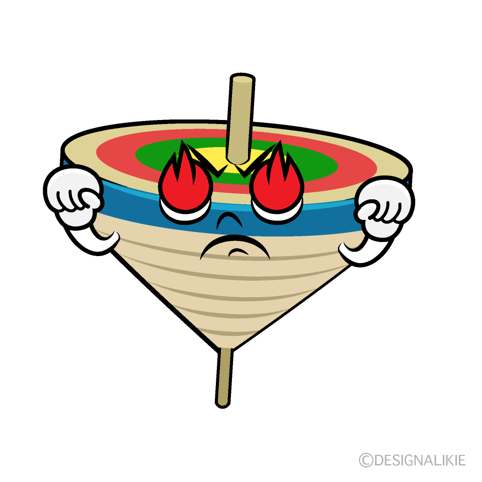 目が炎でメラメラ闘志が燃える、可愛い新年遊びのコマ回しのデザインが魅力!、無料で使えるお正月イラスト素材です。