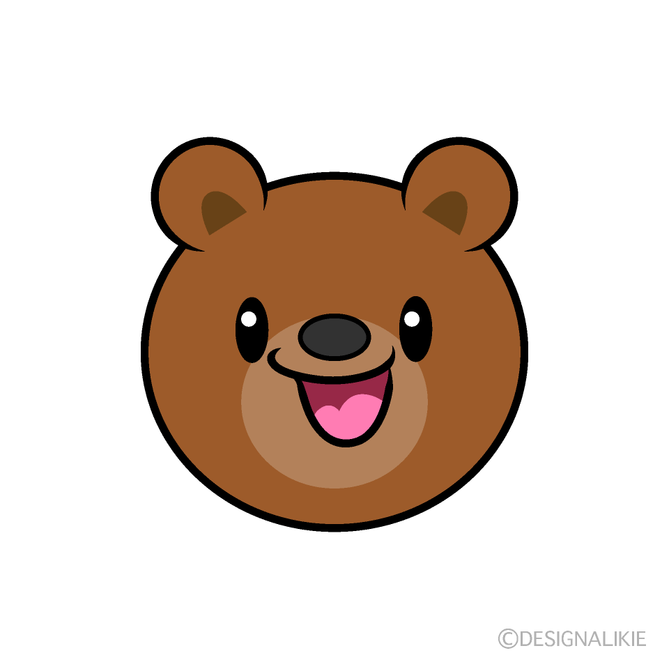 笑顔の熊(くま)の顔デザインが可愛い!、無料で使える動物の顔イラスト素材です。