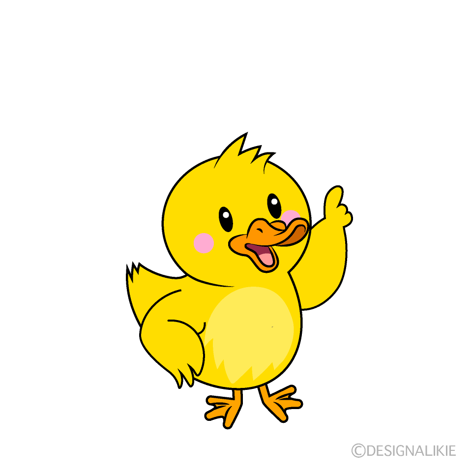 指差しするかわいいアヒルキャラクターをデザインした無料の鳥イラスト素材です。