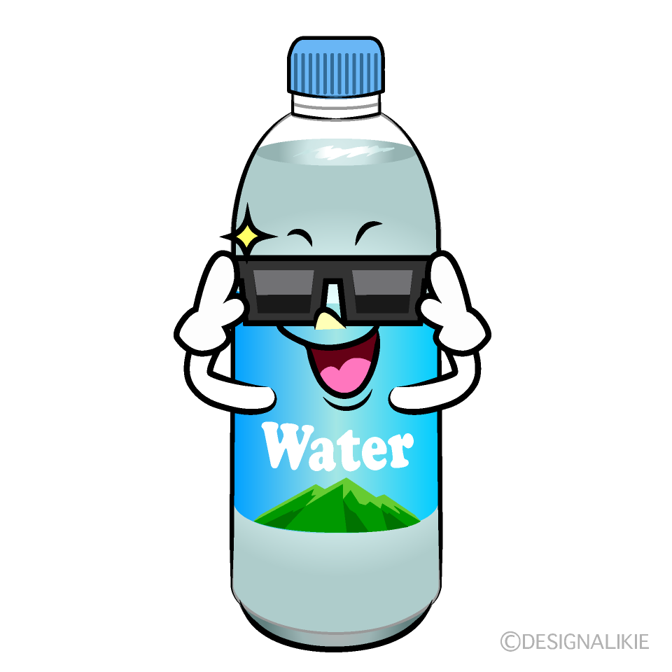 サングラスをかけた、かっこいいミネラルウォーターペットボトルキャラクターをデザインした無料のドリンクイラスト素材です。